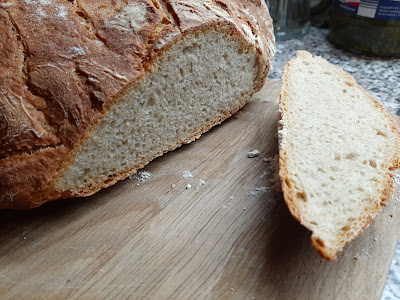 Das nächste Brot ist ebenfalls aus einem Forum, ungefähr halbiert und auf uns abgestimmt. Ich hatte noch Pellkartoffeln vom Vortag übrig, da passte die Menge nicht ganz zum Rest.
